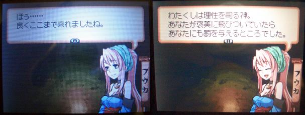 ちょっと待てイヅナーーーーーーーーーーーーー!!お前に取っておじじ様はシノから貰ったハンカチ以下かよ!酷い話だ。んで、カゲンに「お前を食ってやる」言われて、「性的な意味で」と脳内で思った自分が嫌になった。そのまま瞬間的に「エロゲだったら負けた時に凌辱イベントに入るんだろうなー」とか思ったし、フウカ×イヅナのレズプレイ脳内再生余裕でしたし。誰かこのエロゲ脳を何とかしてくれ。サクッと負けちゃってこれまた再戦するはめに。カゲンに負けた際「食うって言うのは冗談だが」って台詞を吐かれたんですが、再戦に行った際、