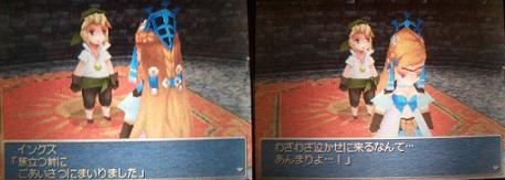 ごめん、イングズ、君だけキャラクター性ではなく利便性のためにジョブを決めた。その後城の兵士に「赤魔導士がサスーン兵の憧れのジョブ」という話を聞いて物凄く申し訳ない気持ちになりました。ごめん、イングズ…。でも赤魔って序盤は黒白魔法使えて便利だけど、上位魔法が使えないから終盤使えなくて困るから、この話聞いた後にジョブチェンジを行っても君を赤魔にはしなかったけどね。
