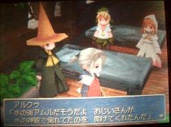 エリアという女性に出会いました。傍にいたじいさんが言うには世界が闇に包まれて、世界中の時間が止まってしまったそうで。エリアという女性はそれを防ごうとして倒れてしまったらしいです。彼女の意識を戻すためにアイテムを使ってみようという事になります。「エリクサーくらい使わないと目覚めないよなー、でも勿体無いなー」とか思って、取り敢えずポーション使ってみたら目覚めました。嘘っ!?簡単過ぎてちょっとビックリ。