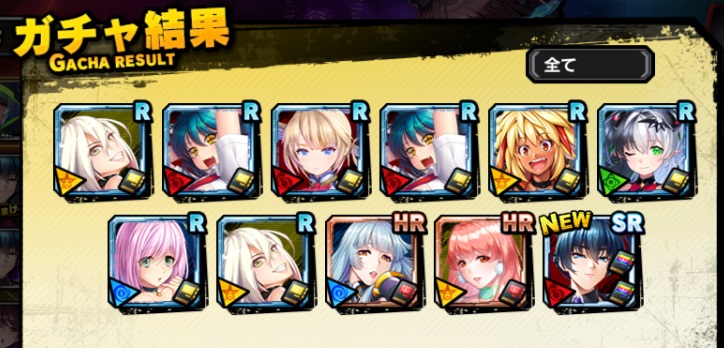 取り敢えず10連チケットで1回。SRが出て幸先良いぞーと思ったら持ってるやつでやんの。ううううーーん。