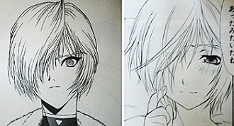 主人公なのに最終巻まともなバストショット絵がなくて苦労しました(笑)。顔よりも髪型の変化が顕著ですね。最初は割と男っぽく能動的な感じだったのが、振り回され体質の受動型主人公に移行していきました。その影響か顔つきも優しい雰囲気に。正直将来ハゲそうな髪型の変化が心配で心配でしょうがない。
