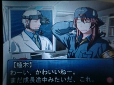 いやあ完全に伏兵植木にやられました。植木さんって妙に人気が高いのは知っていましたが、南科研の中で顔が良いし若いからだと思っていたのですが、こりゃあ人気出ますわ。可愛過ぎだろうがよ、植木よ。この後も「ほらほら見て見て」とかテラ萌えな台詞を吐きよるわけだ、この男。なんだよこいつ、怖いよー、いきなり頭角を現したよー。