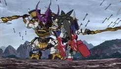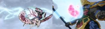 戦いだけが俺を熱くするんだ!!という主張を声高にする呂布。本当にこの漢の存在感は半端ないですね。人によっては暑苦しい奴なんでしょうが、私は「戦いこそ俺の全て」という戦闘馬鹿は大好物なので大好きです。男とか魂とか信念とか戦いとか血とか、そういう言葉にひたすら弱い。燃えオタです、やけどするくらい熱いのが堪らなく好き。子供向けだからか、そういう熱さに実直なのがいいなー、このアニメは。呂布が少年向けのキャラだとは思いませんがね。