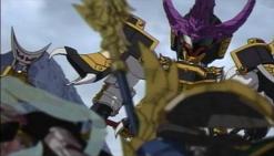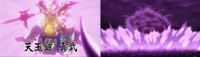 怒りに震え董卓へその獣性を剥き出しにする呂布。董卓を持っていた玉璽が呂布に反応し、天玉鎧となって呂布の力になります。そのまま城ごと董卓を葬り去り、その爆発でその周辺一体破壊し尽くします。呂布さんパネエっす・・・。