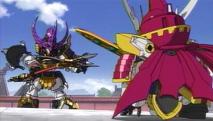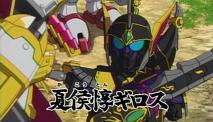 張三兄弟が合体して劉備達が「なにい!」って言ってたけど、視聴者的にも「なにい!?」だよ。てっきり劉備、関羽、張飛と張三兄弟の3対3の戦いになると思ったのに…。そして劉備の龍帝剣が輝き、それに反応して関羽、張飛の体も光り輝やいたので、「ああ劉備と関羽と張飛が合体するのだな」と思ったら、関羽と張飛のパーツ(これの名前なんですか?)だけが外れて、そのパーツだけが劉備の肩に合体。張兄弟みたいな合体はせんのかい!!