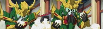 劉備と張飛がどんどん飯を取るので慌てて握り飯を引っつかむ大人気ない関羽に激しく萌えました。普段大人ぶってるくせに!父親ポジションで張飛を窘めている癖に!!