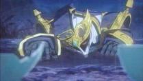 孫権の正義と怒りに反応して天玉鎧が発現!「いつまでたっても三璃紗に平和がこないのは 袁術! お前のような奴がいるからいるからだ!」がとても熱かったです。そして、孫策の跡継ぎとして皆に孫権の存在を知らしめるのに、これはとても上手いやり方だと思いました。皆気弱な孫権が孫策の跡を継ぐというのには不安を覚えるところだと思うんですが、袁術を倒し、天玉鎧を発現させたとあれば認めますよね。アニメとしてはほんの数分のエピソードなんですが、その数分でも「呉の民が孫権が孫策の跡目として認める」というのを納得させるだけ説得力がありました。
